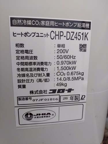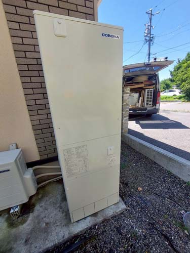 平塚市旭町 コロナ自然冷媒CO2家庭用ヒートポンプ給湯機 ヒートポンプユニットCHP-DZ451K エコキュート交換工事